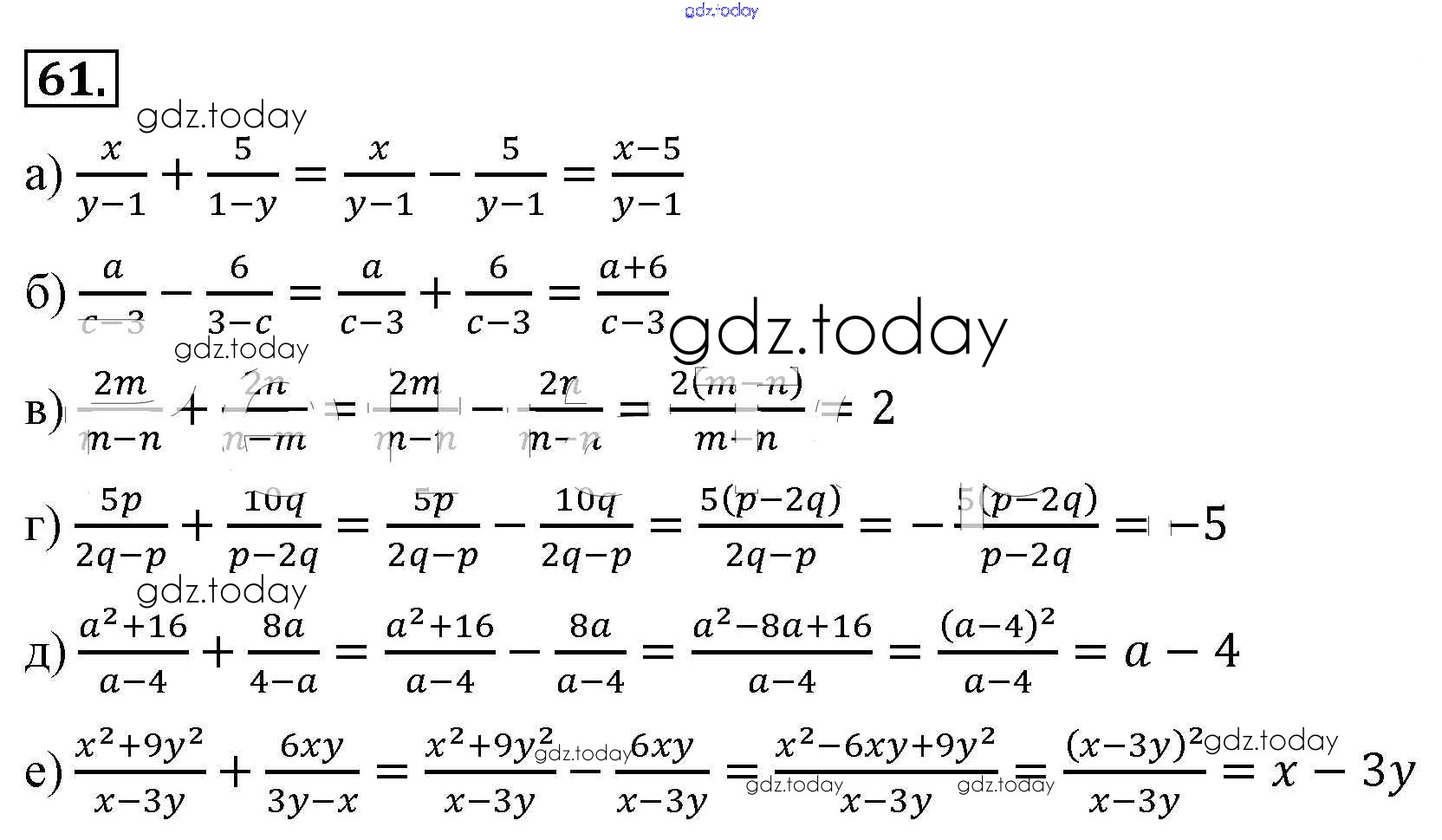 На страницах сайта gdz.today вы найдете учебный и вспомогательный материал, направленный на улучшения знаний школьной программы. ГДЗ - онлайн мир знаний Решение к упражнениям 61 Учебнику по Алгебре для 8 класса Макарычев, Миндюк Просвещение 2016