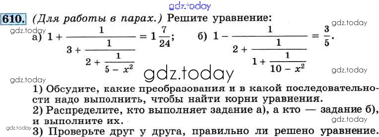 На страницах сайта gdz.today вы найдете учебный и вспомогательный материал, направленный на улучшения знаний школьной программы. ГДЗ - онлайн мир знаний Решение к упражнениям 610 Учебнику по Алгебре для 8 класса Макарычев, Миндюк Просвещение 2016