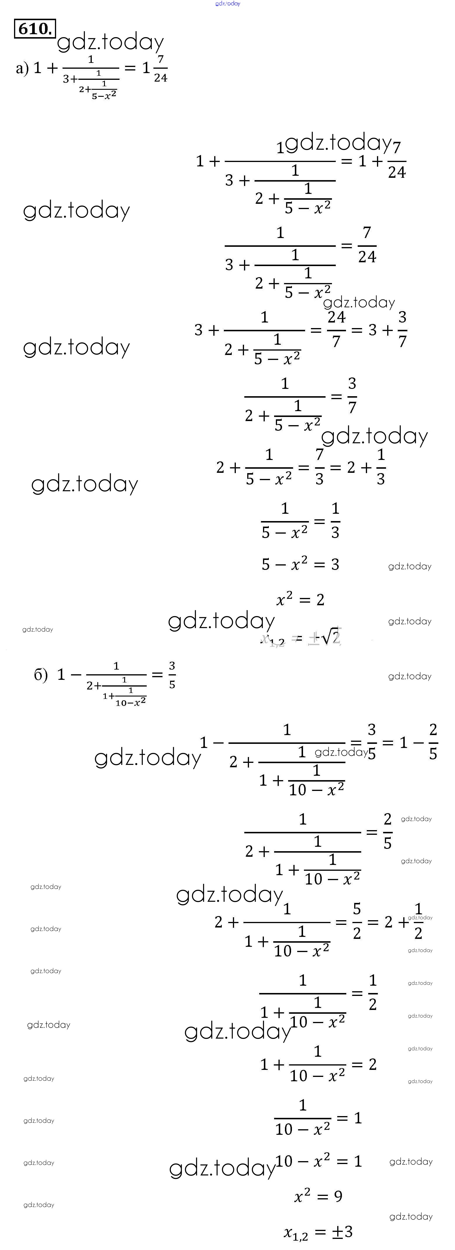 Ответы к Решение к упражнениям 610 Учебнику по Алгебре для 8 класса Макарычев, Миндюк Просвещение 2016