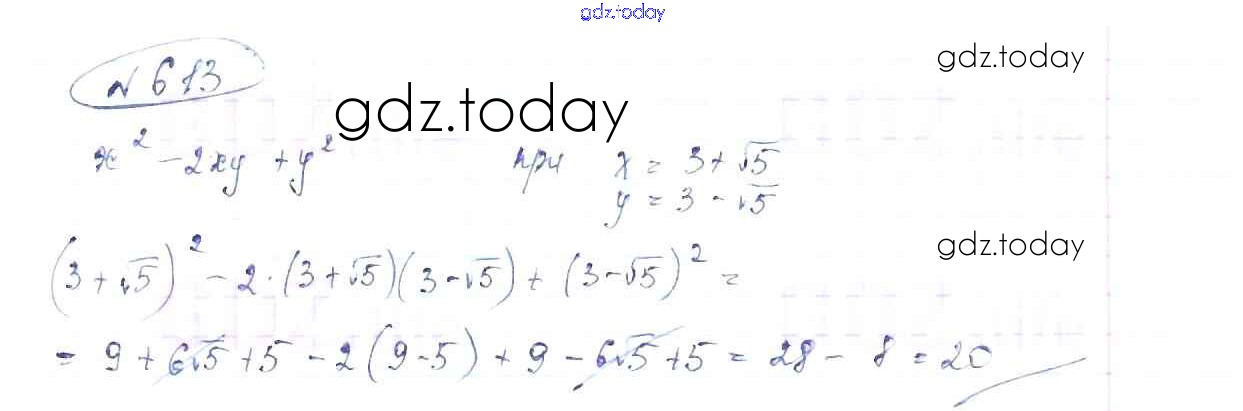 На страницах сайта gdz.today вы найдете учебный и вспомогательный материал, направленный на улучшения знаний школьной программы. ГДЗ - онлайн мир знаний Решение к упражнениям 613 Учебнику по Алгебре для 8 класса Макарычев, Миндюк Просвещение 2016