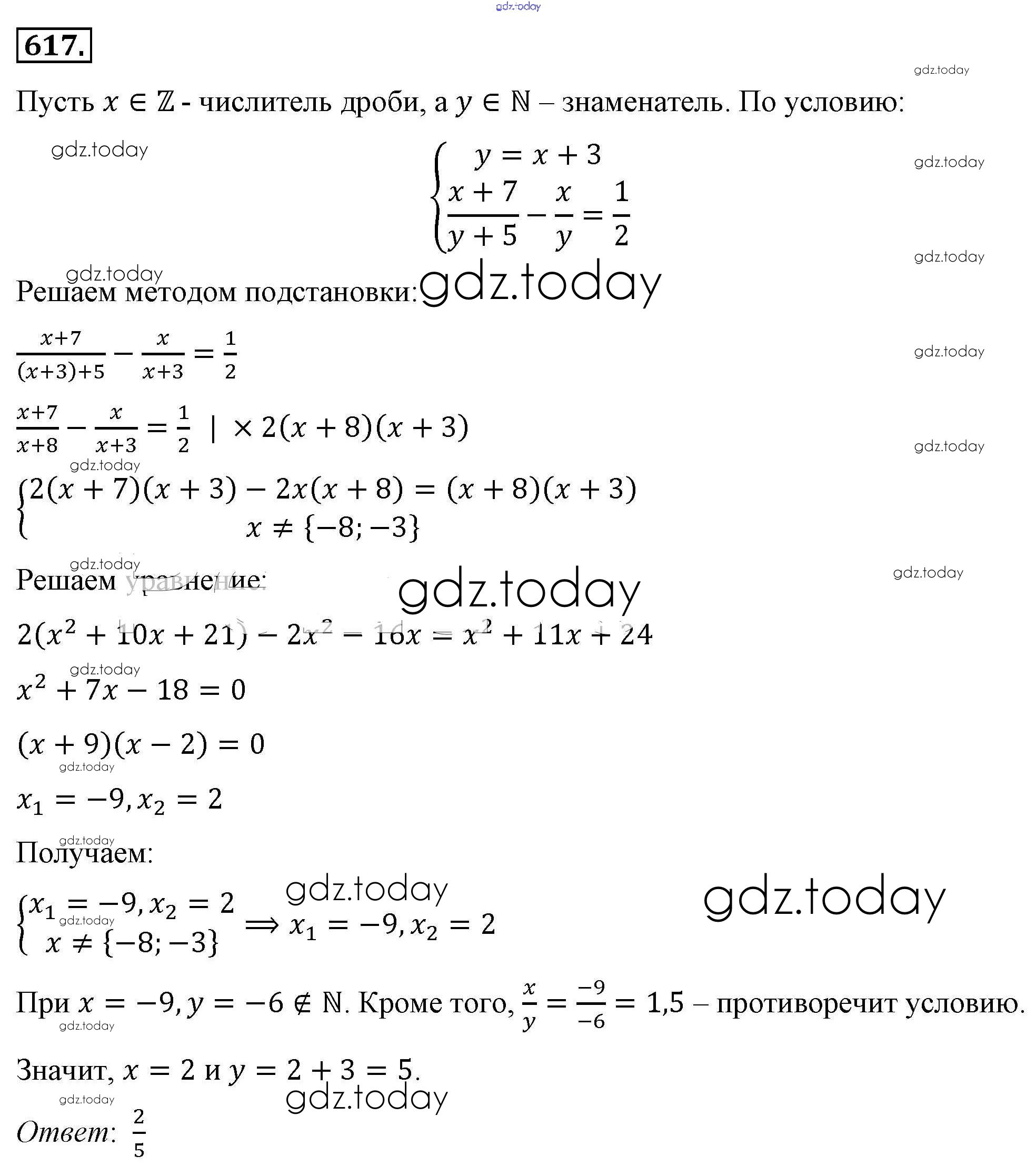 На страницах сайта gdz.today вы найдете учебный и вспомогательный материал, направленный на улучшения знаний школьной программы. ГДЗ - онлайн мир знаний Решение к упражнениям 617 Учебнику по Алгебре для 8 класса Макарычев, Миндюк Просвещение 2016
