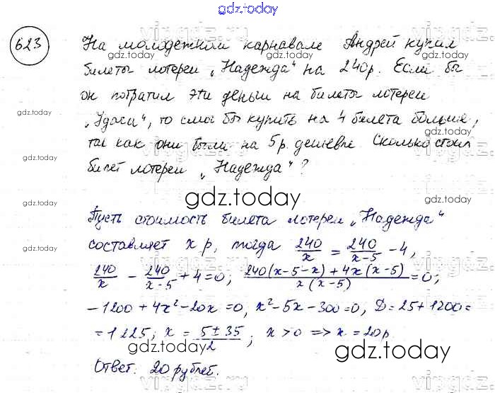 На страницах сайта gdz.today вы найдете учебный и вспомогательный материал, направленный на улучшения знаний школьной программы. ГДЗ - онлайн мир знаний Решение к упражнениям 623 Учебнику по Алгебре для 8 класса Макарычев, Миндюк Просвещение 2016