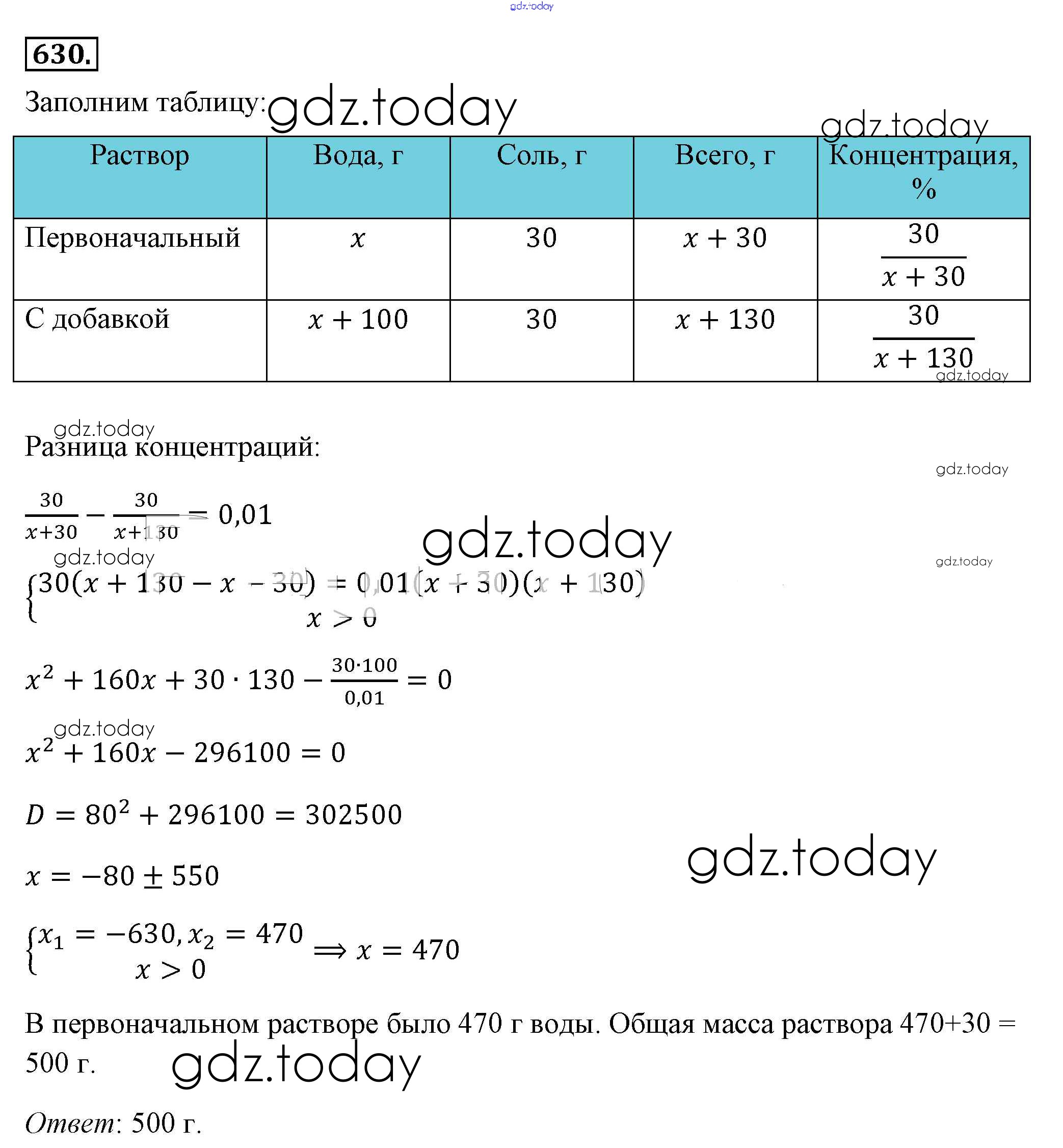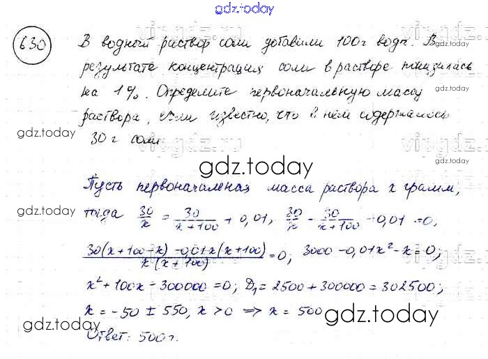 Ответы к Решение к упражнениям 630 Учебнику по Алгебре для 8 класса Макарычев, Миндюк Просвещение 2016
