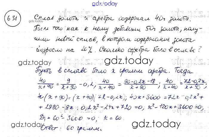 На страницах сайта gdz.today вы найдете учебный и вспомогательный материал, направленный на улучшения знаний школьной программы. ГДЗ - онлайн мир знаний Решение к упражнениям 631 Учебнику по Алгебре для 8 класса Макарычев, Миндюк Просвещение 2016