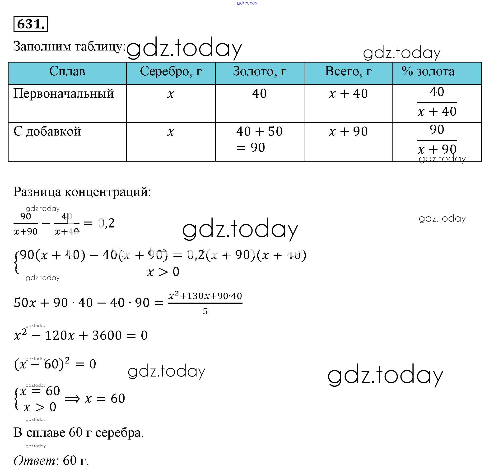 Ответы к Решение к упражнениям 631 Учебнику по Алгебре для 8 класса Макарычев, Миндюк Просвещение 2016