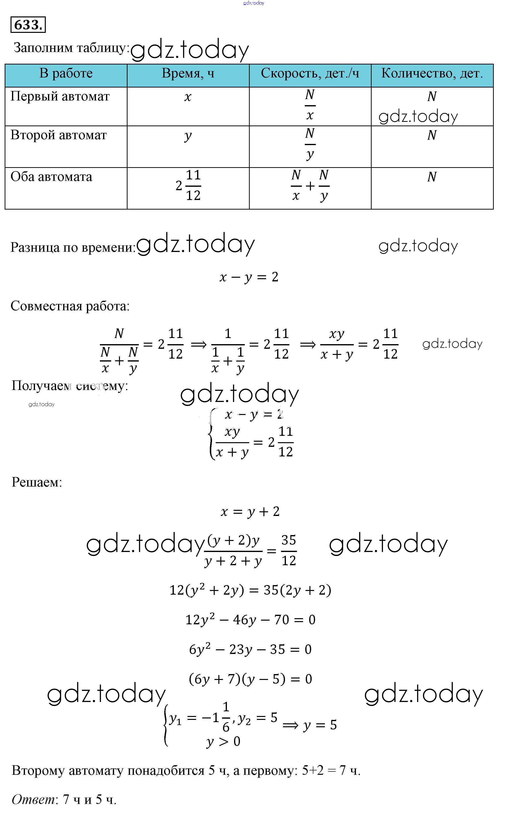 Ответы к Решение к упражнениям 633 Учебнику по Алгебре для 8 класса Макарычев, Миндюк Просвещение 2016