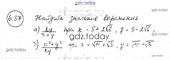 На страницах сайта gdz.today вы найдете учебный и вспомогательный материал, направленный на улучшения знаний школьной программы. ГДЗ - онлайн мир знаний Решение к упражнениям 637 Учебнику по Алгебре для 8 класса Макарычев, Миндюк Просвещение 2016
