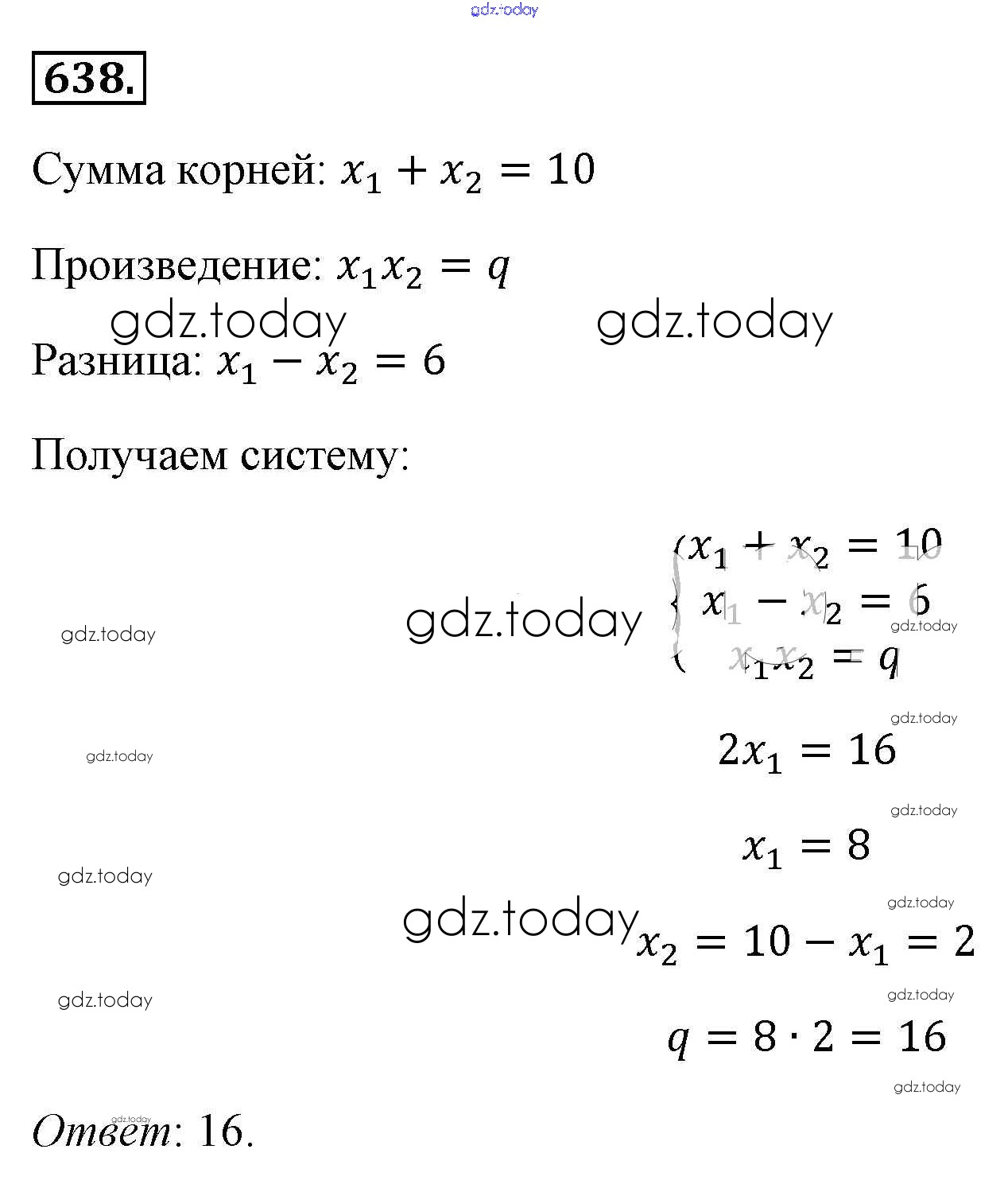 На страницах сайта gdz.today вы найдете учебный и вспомогательный материал, направленный на улучшения знаний школьной программы. ГДЗ - онлайн мир знаний Решение к упражнениям 638 Учебнику по Алгебре для 8 класса Макарычев, Миндюк Просвещение 2016