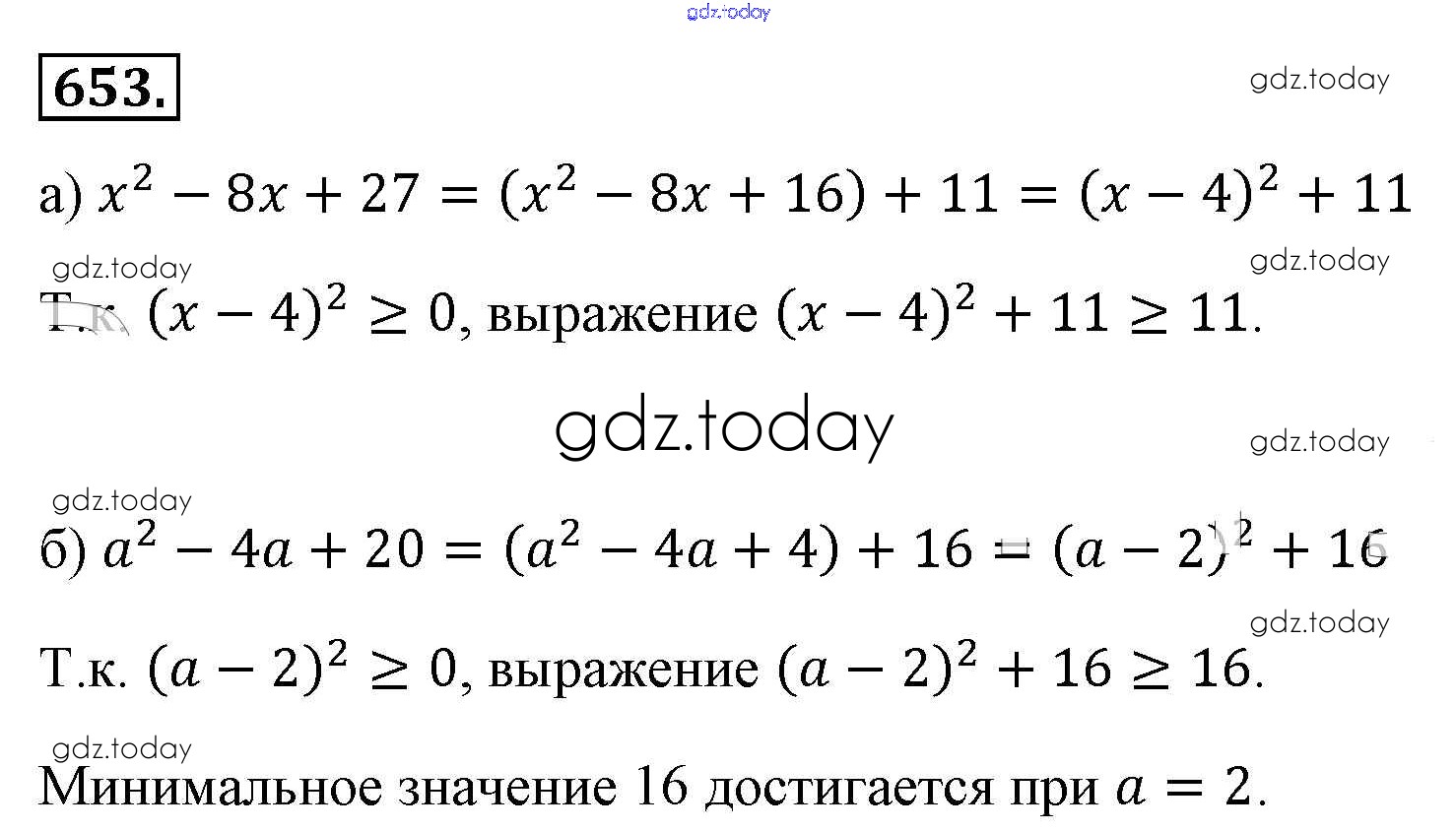 На страницах сайта gdz.today вы найдете учебный и вспомогательный материал, направленный на улучшения знаний школьной программы. ГДЗ - онлайн мир знаний Решение к упражнениям 653 Учебнику по Алгебре для 8 класса Макарычев, Миндюк Просвещение 2016