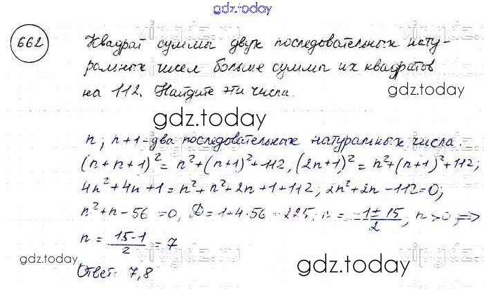 Ответы к Решение к упражнениям 662 Учебнику по Алгебре для 8 класса Макарычев, Миндюк Просвещение 2016