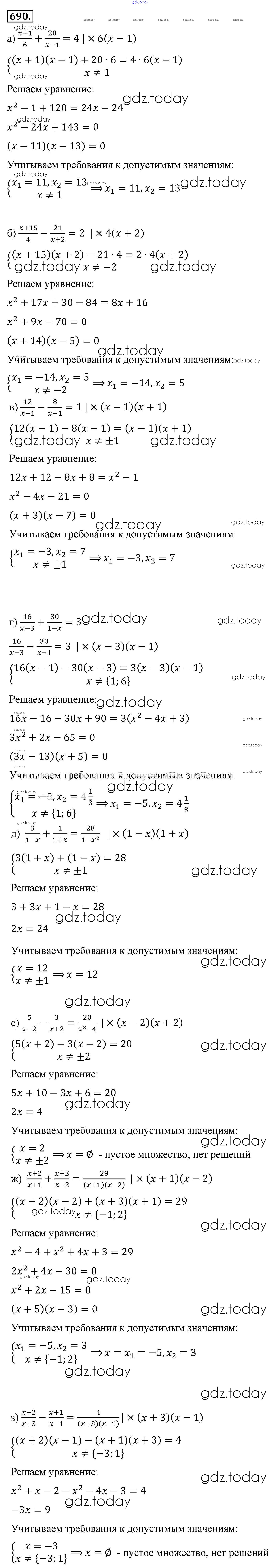Ответы к Решение к упражнениям 690 Учебнику по Алгебре для 8 класса Макарычев, Миндюк Просвещение 2016