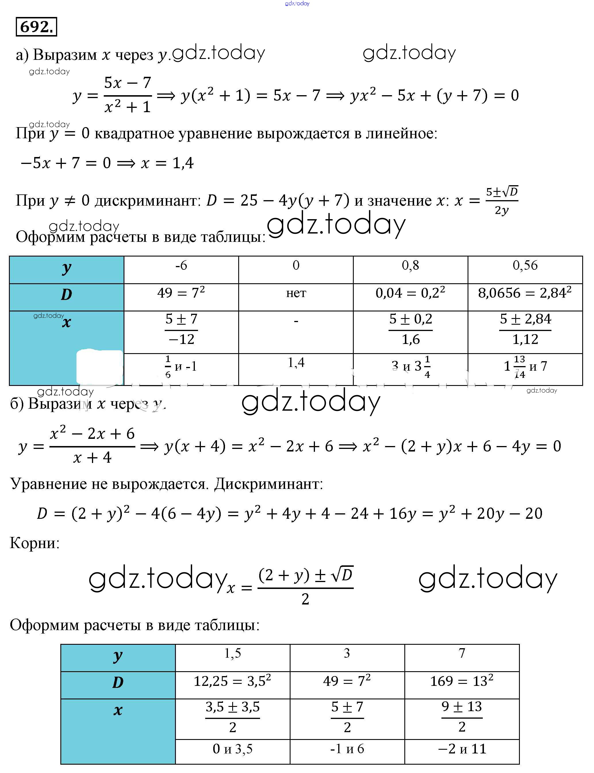 На страницах сайта gdz.today вы найдете учебный и вспомогательный материал, направленный на улучшения знаний школьной программы. ГДЗ - онлайн мир знаний Решение к упражнениям 692 Учебнику по Алгебре для 8 класса Макарычев, Миндюк Просвещение 2016
