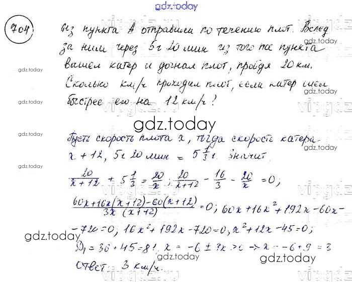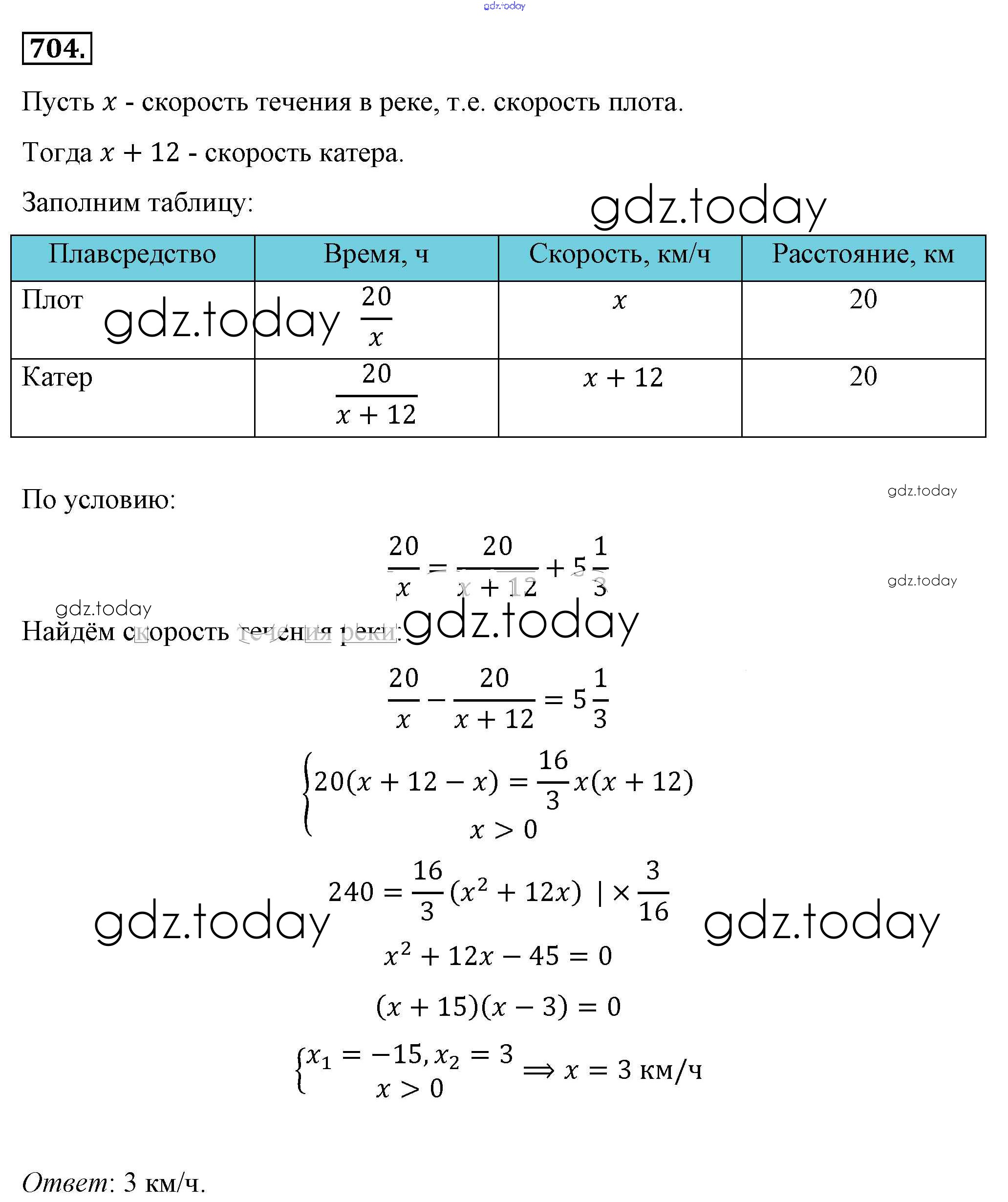 Ответы к Решение к упражнениям 704 Учебнику по Алгебре для 8 класса Макарычев, Миндюк Просвещение 2016
