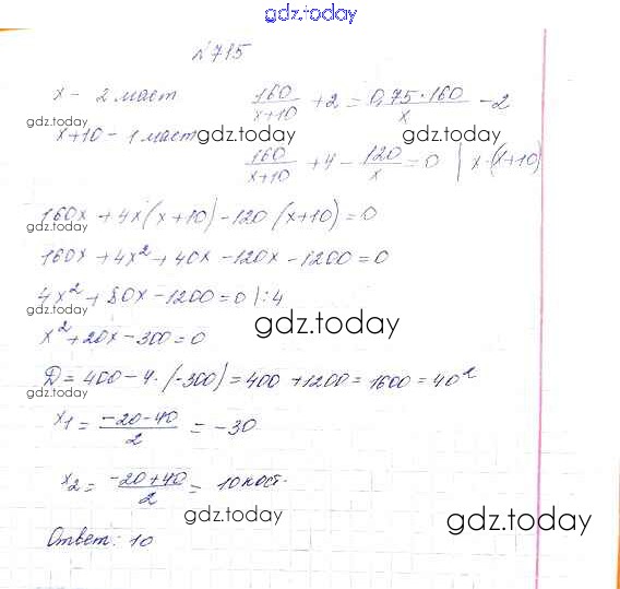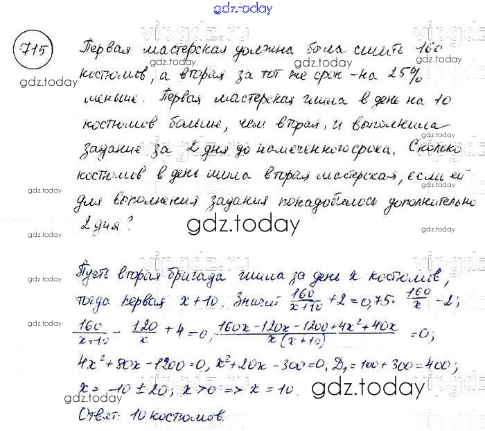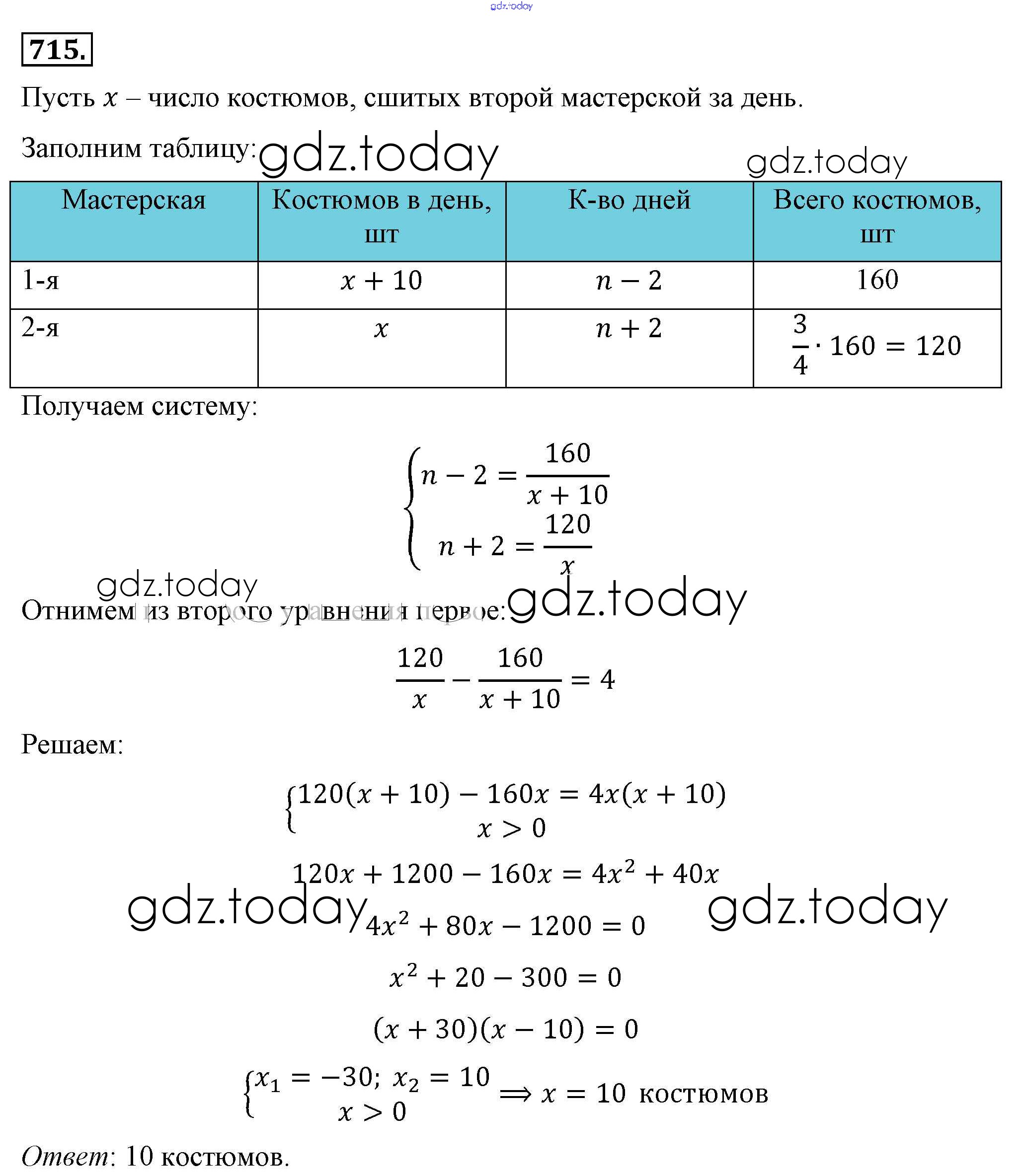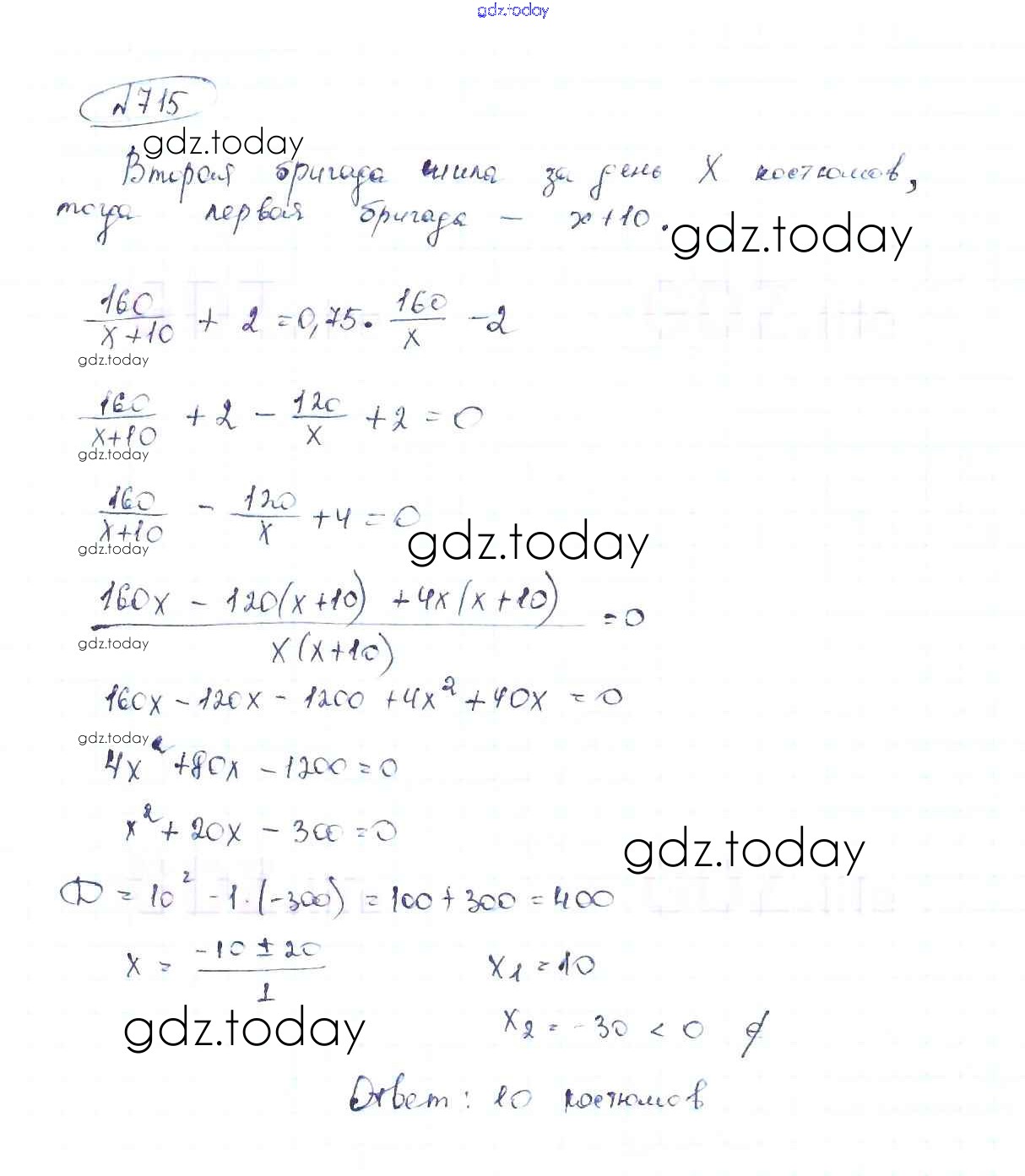 Ответы к Решение к упражнениям 715 Учебнику по Алгебре для 8 класса Макарычев, Миндюк Просвещение 2016