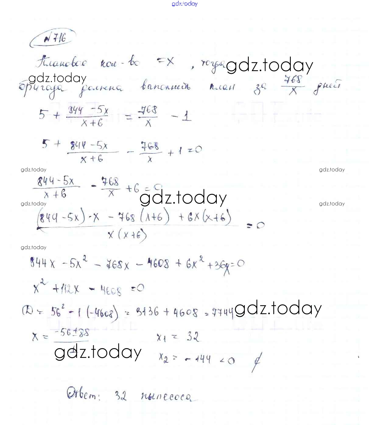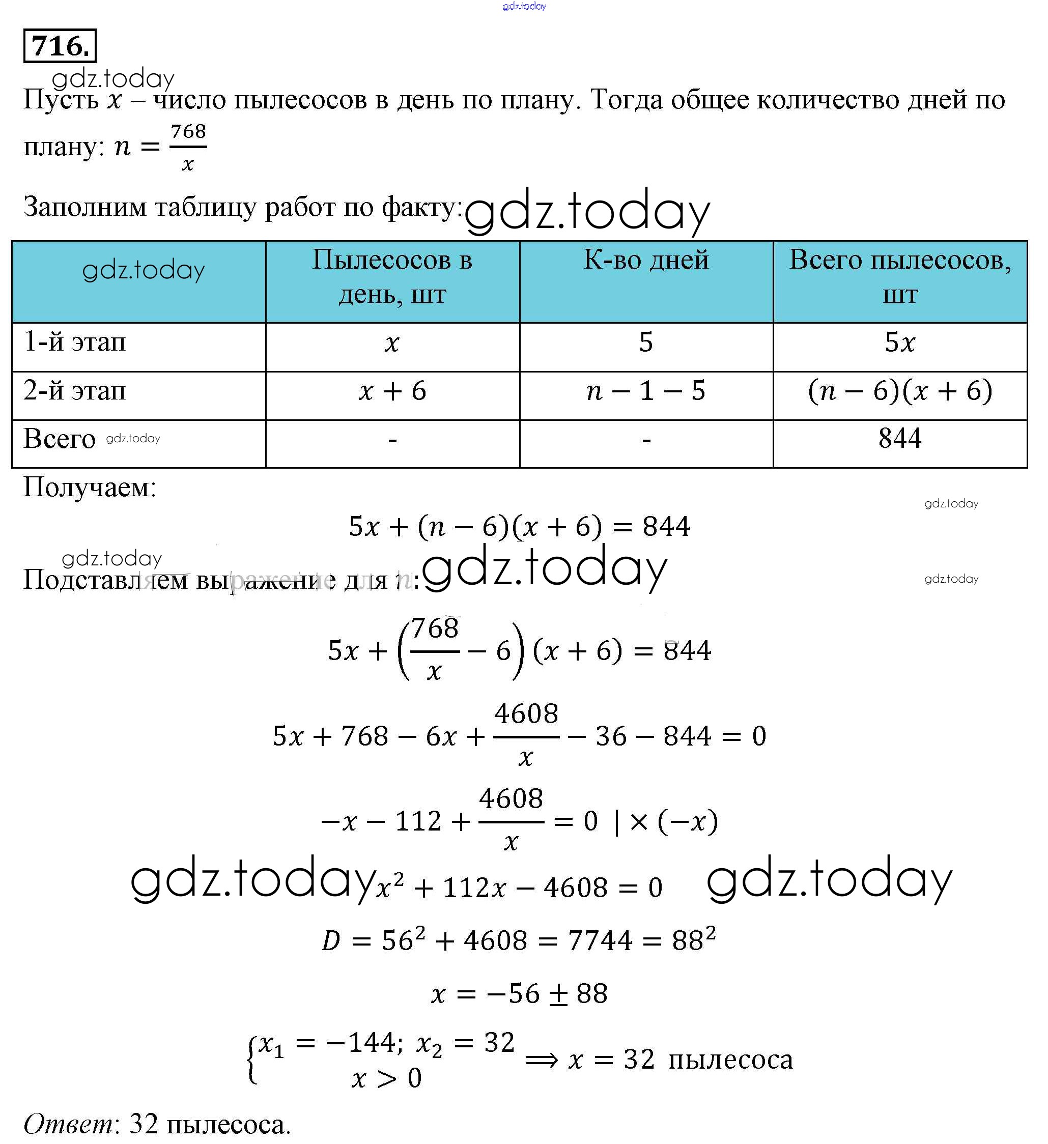 На страницах сайта gdz.today вы найдете учебный и вспомогательный материал, направленный на улучшения знаний школьной программы. ГДЗ - онлайн мир знаний Решение к упражнениям 716 Учебнику по Алгебре для 8 класса Макарычев, Миндюк Просвещение 2016