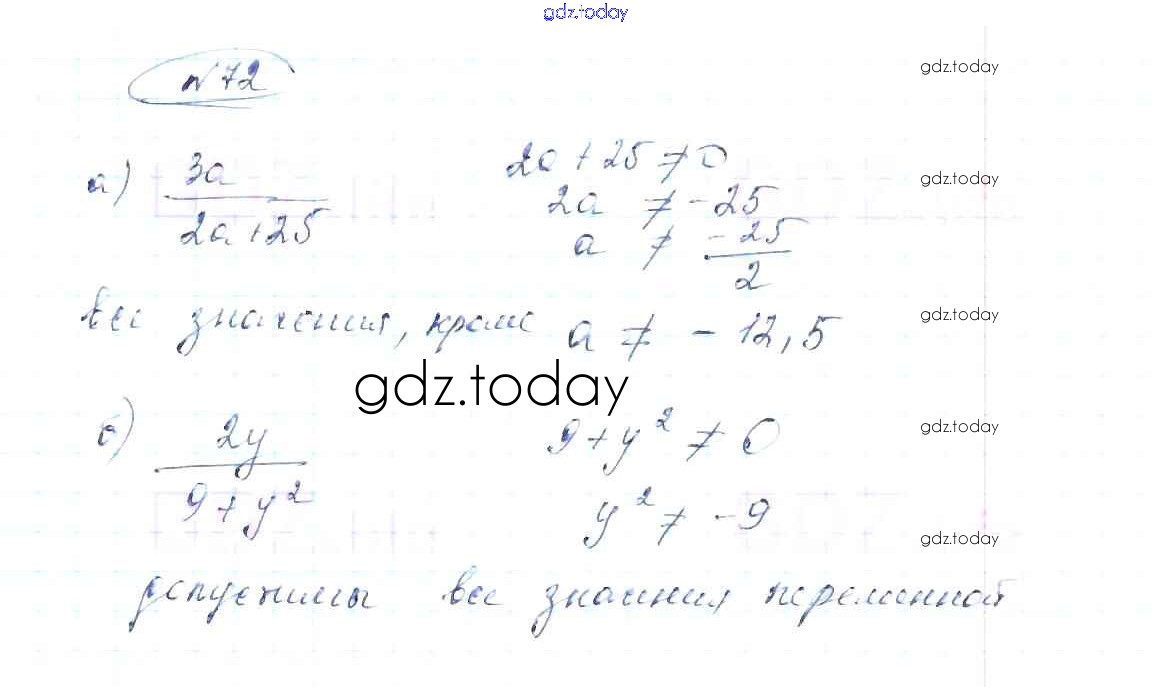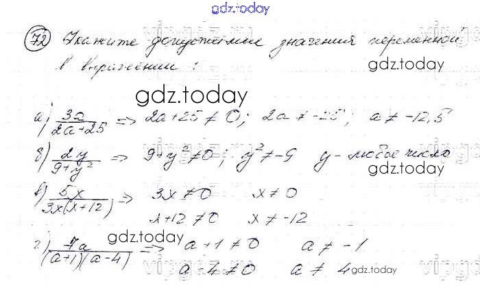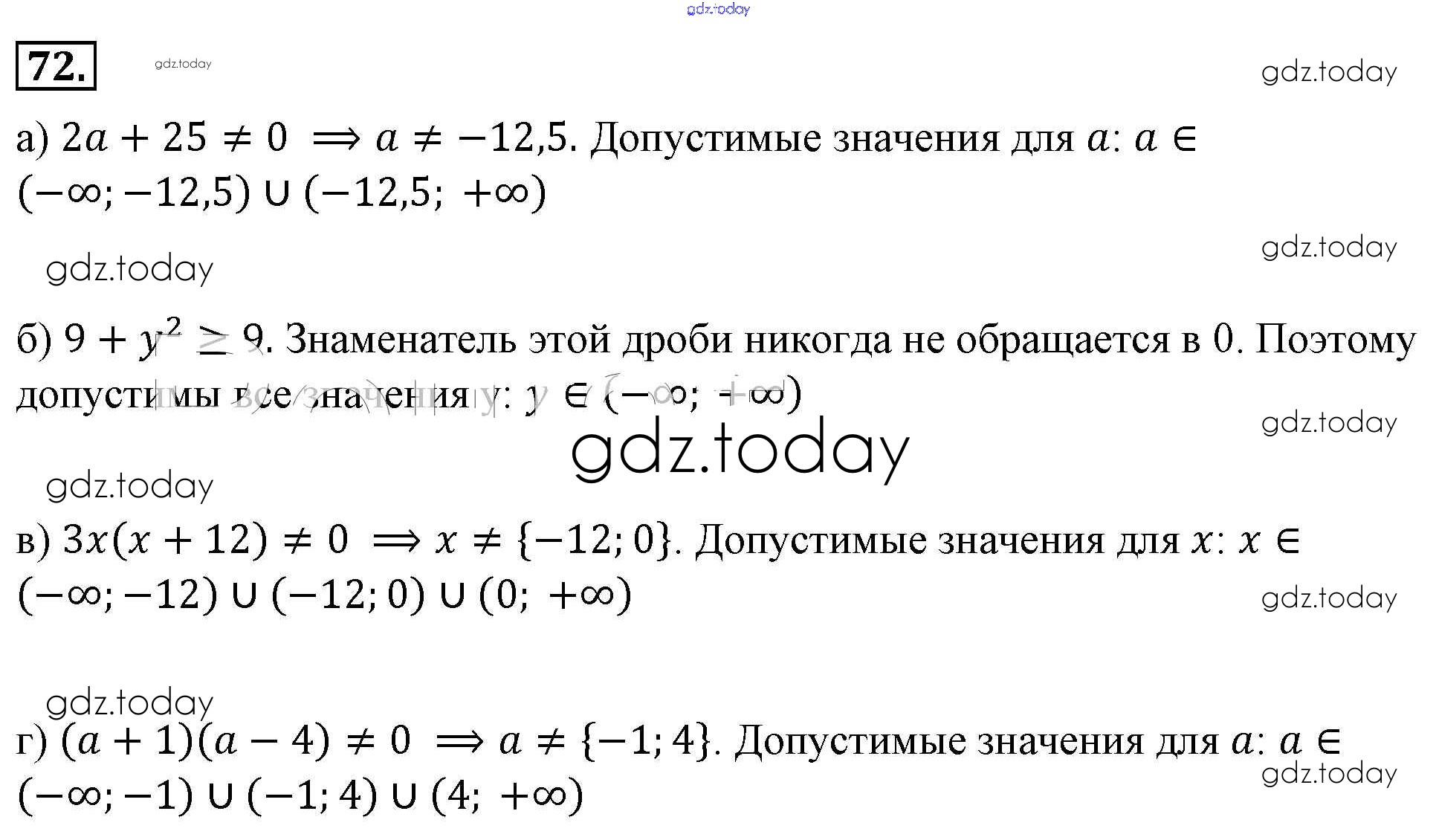 На страницах сайта gdz.today вы найдете учебный и вспомогательный материал, направленный на улучшения знаний школьной программы. ГДЗ - онлайн мир знаний Решение к упражнениям 72 Учебнику по Алгебре для 8 класса Макарычев, Миндюк Просвещение 2016