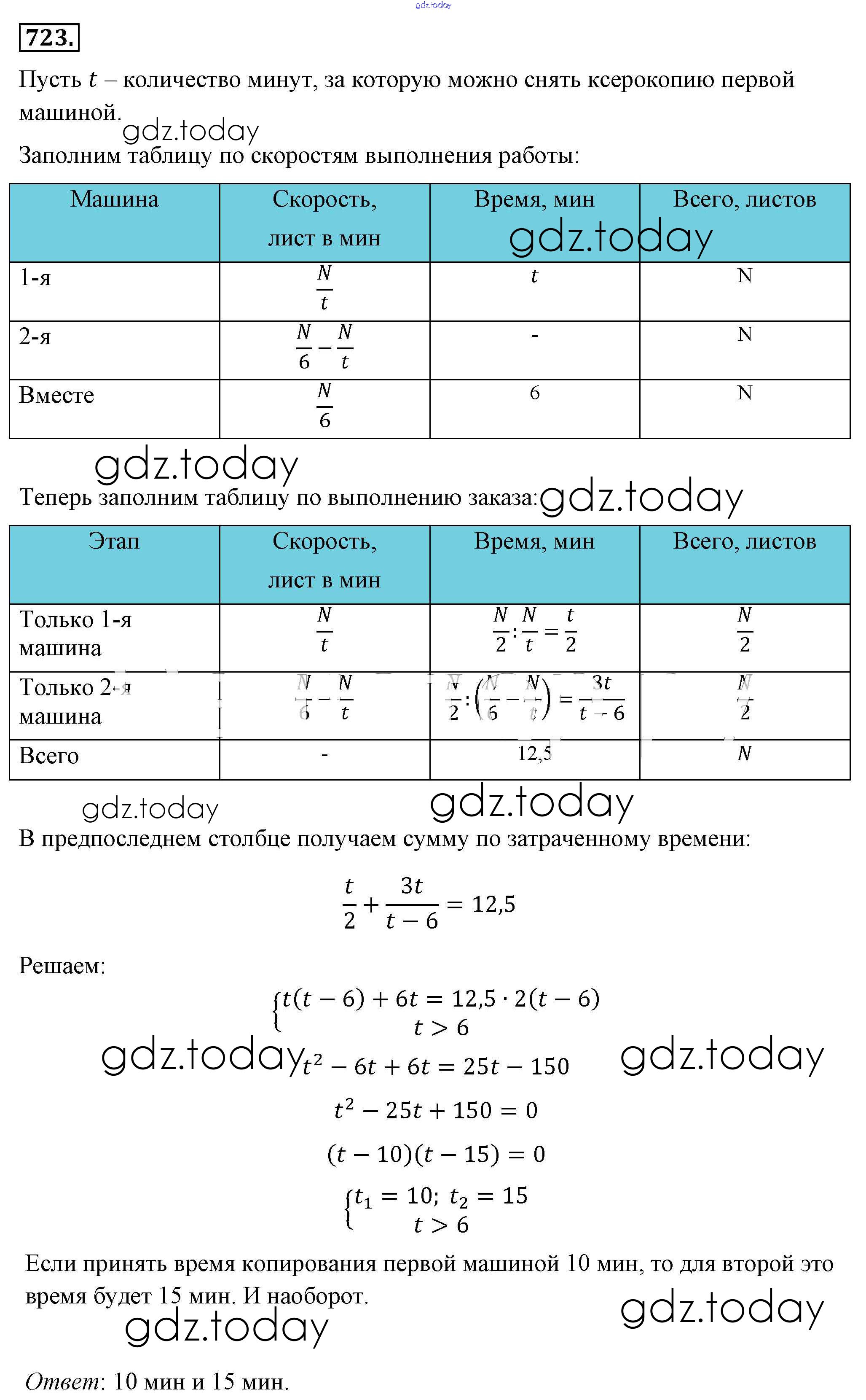 Ответы к Решение к упражнениям 723 Учебнику по Алгебре для 8 класса Макарычев, Миндюк Просвещение 2016