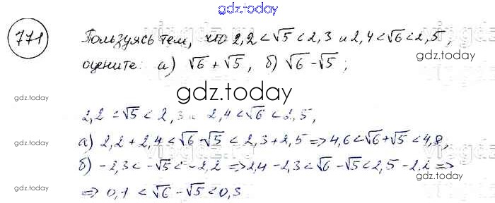 На страницах сайта gdz.today вы найдете учебный и вспомогательный материал, направленный на улучшения знаний школьной программы. ГДЗ - онлайн мир знаний Решение к упражнениям 771 Учебнику по Алгебре для 8 класса Макарычев, Миндюк Просвещение 2016