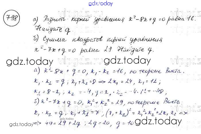 На страницах сайта gdz.today вы найдете учебный и вспомогательный материал, направленный на улучшения знаний школьной программы. ГДЗ - онлайн мир знаний Решение к упражнениям 798 Учебнику по Алгебре для 8 класса Макарычев, Миндюк Просвещение 2016