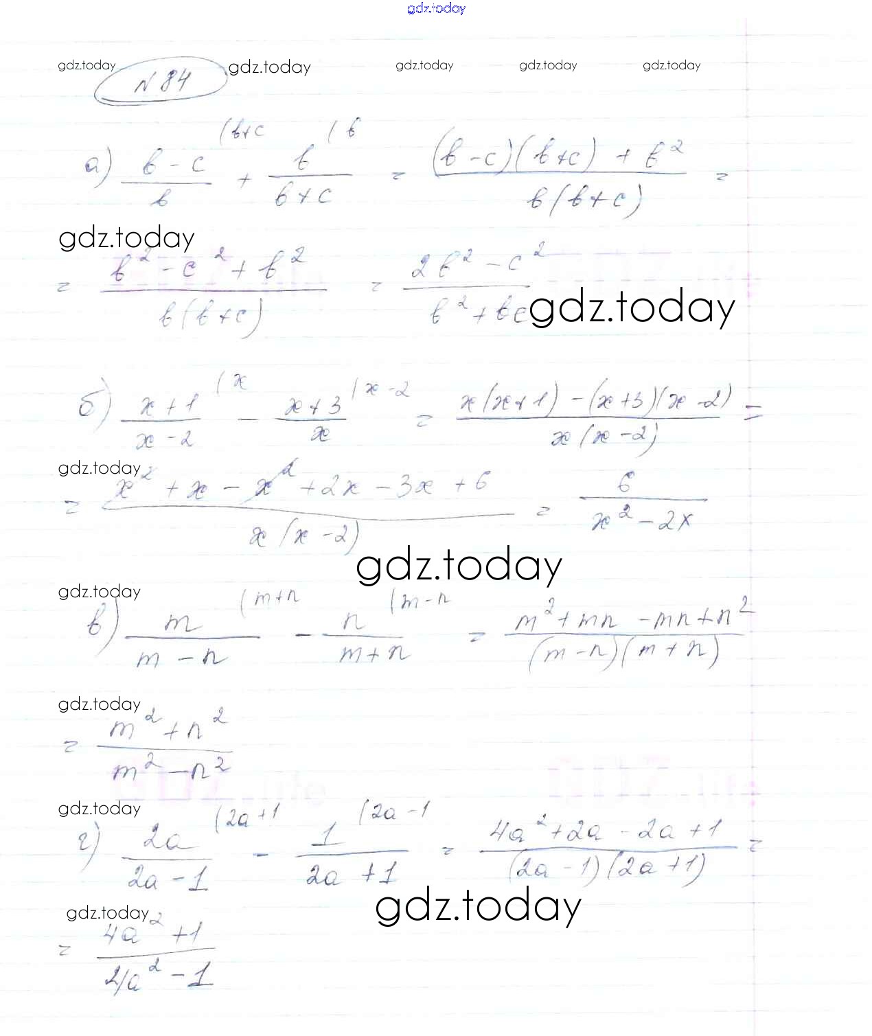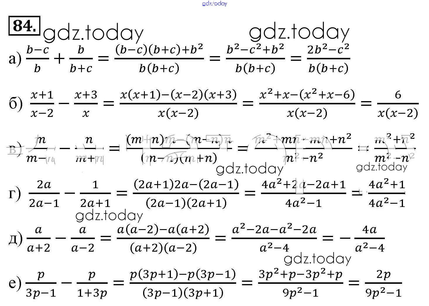 На страницах сайта gdz.today вы найдете учебный и вспомогательный материал, направленный на улучшения знаний школьной программы. ГДЗ - онлайн мир знаний Решение к упражнениям 84 Учебнику по Алгебре для 8 класса Макарычев, Миндюк Просвещение 2016
