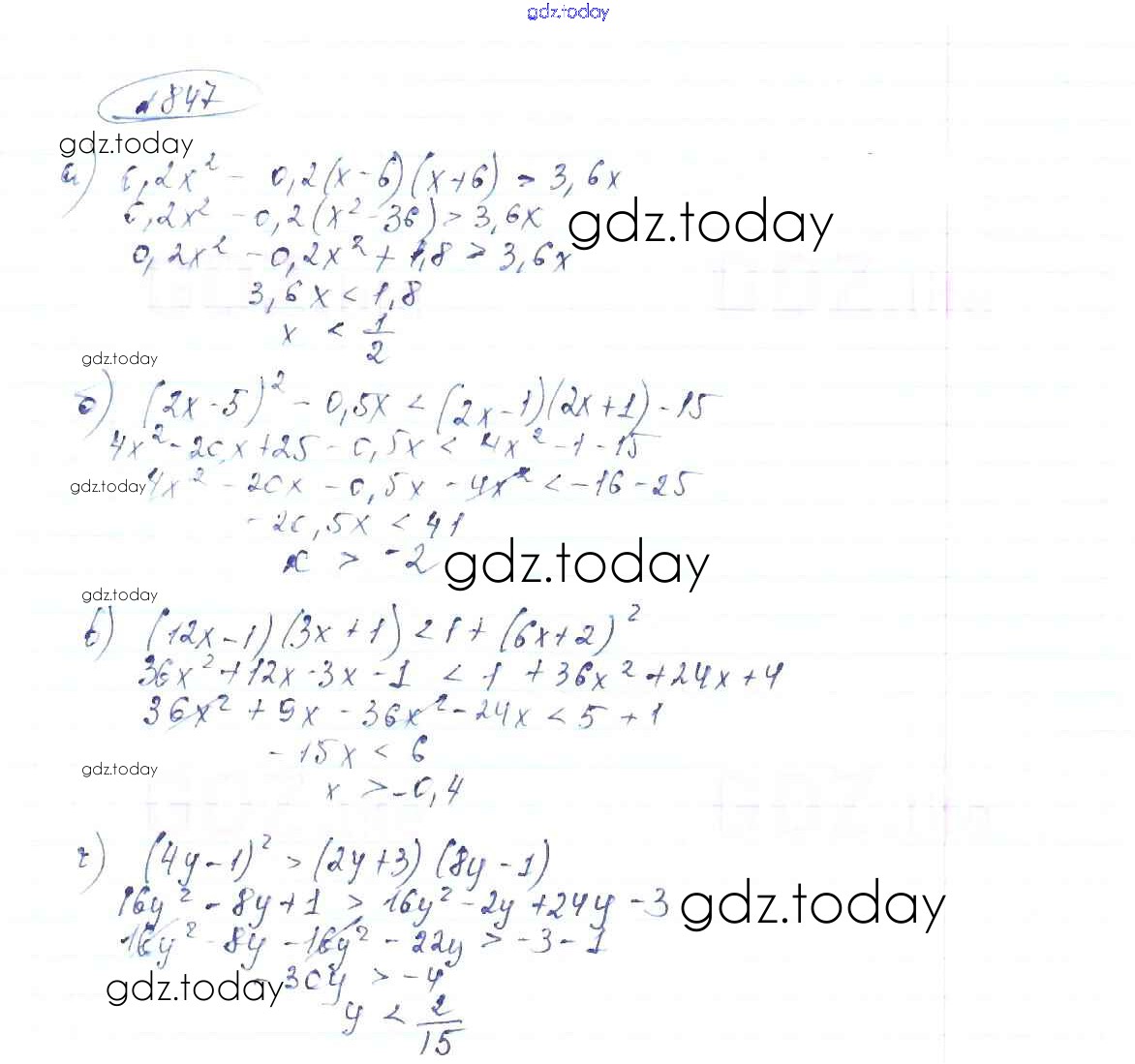 На страницах сайта gdz.today вы найдете учебный и вспомогательный материал, направленный на улучшения знаний школьной программы. ГДЗ - онлайн мир знаний Решение к упражнениям 847 Учебнику по Алгебре для 8 класса Макарычев, Миндюк Просвещение 2016