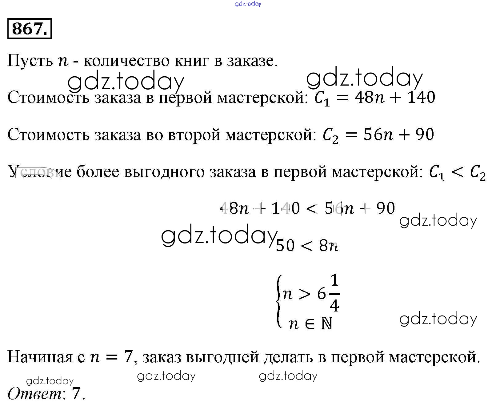 Ответы к Решение к упражнениям 867 Учебнику по Алгебре для 8 класса Макарычев, Миндюк Просвещение 2016