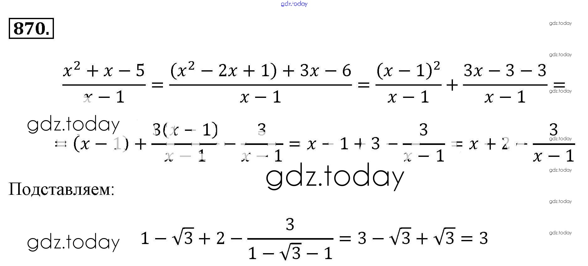 На страницах сайта gdz.today вы найдете учебный и вспомогательный материал, направленный на улучшения знаний школьной программы. ГДЗ - онлайн мир знаний Решение к упражнениям 870 Учебнику по Алгебре для 8 класса Макарычев, Миндюк Просвещение 2016