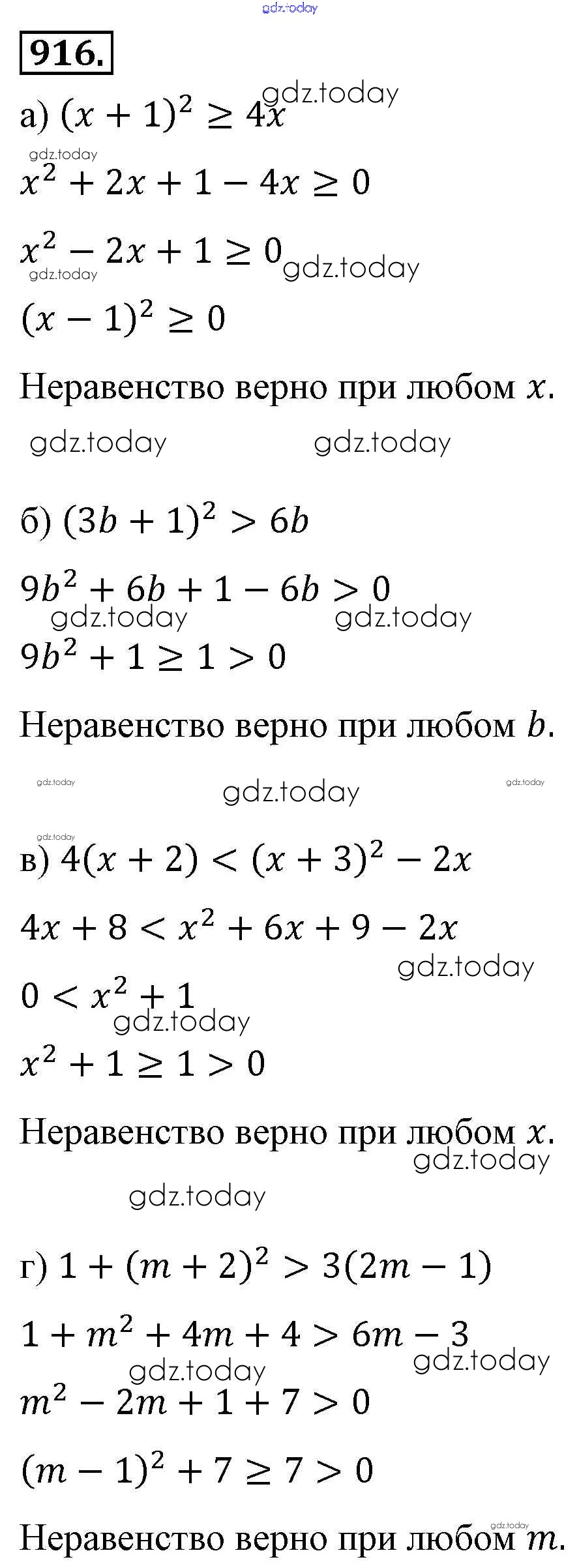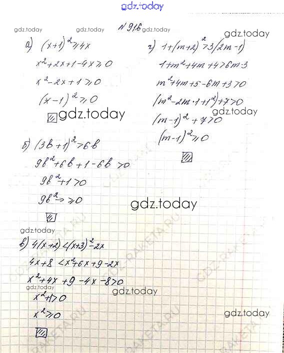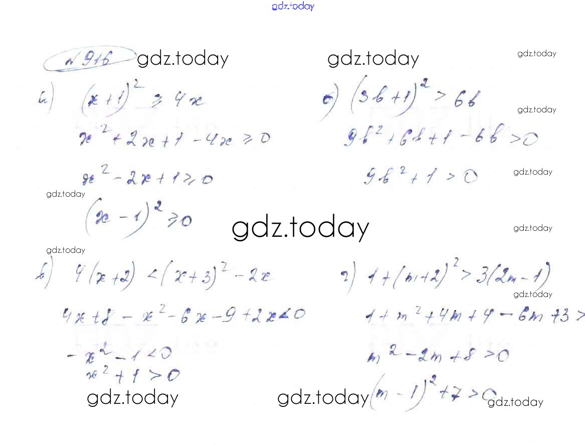 На страницах сайта gdz.today вы найдете учебный и вспомогательный материал, направленный на улучшения знаний школьной программы. ГДЗ - онлайн мир знаний Решение к упражнениям 916 Учебнику по Алгебре для 8 класса Макарычев, Миндюк Просвещение 2016