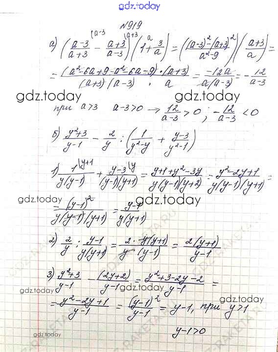 На страницах сайта gdz.today вы найдете учебный и вспомогательный материал, направленный на улучшения знаний школьной программы. ГДЗ - онлайн мир знаний Решение к упражнениям 919 Учебнику по Алгебре для 8 класса Макарычев, Миндюк Просвещение 2016