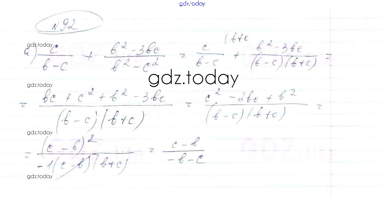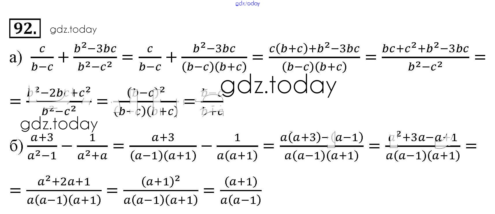 На страницах сайта gdz.today вы найдете учебный и вспомогательный материал, направленный на улучшения знаний школьной программы. ГДЗ - онлайн мир знаний Решение к упражнениям 92 Учебнику по Алгебре для 8 класса Макарычев, Миндюк Просвещение 2016