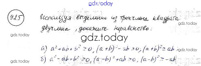 На страницах сайта gdz.today вы найдете учебный и вспомогательный материал, направленный на улучшения знаний школьной программы. ГДЗ - онлайн мир знаний Решение к упражнениям 925 Учебнику по Алгебре для 8 класса Макарычев, Миндюк Просвещение 2016