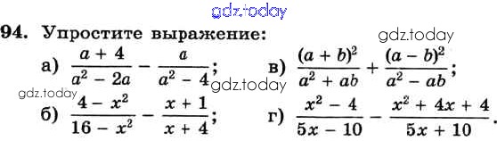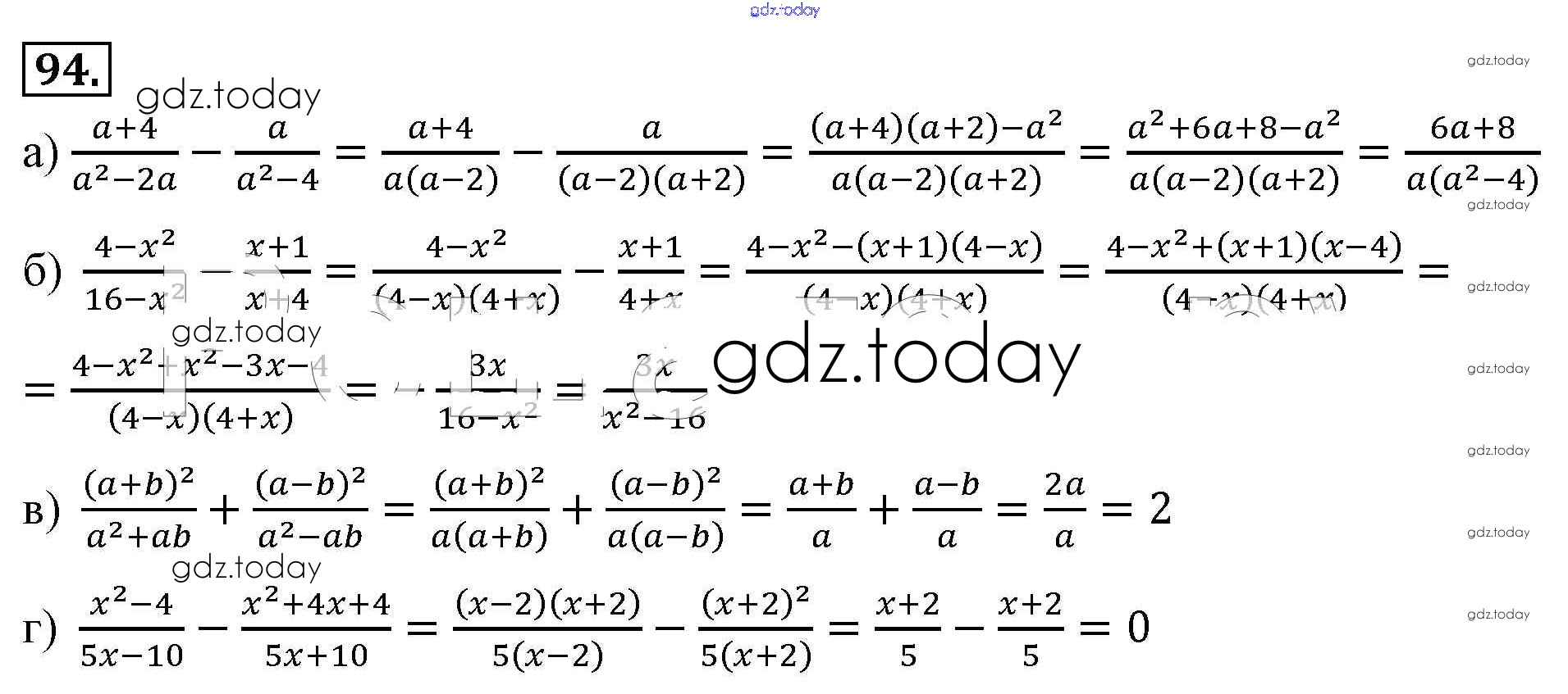 На страницах сайта gdz.today вы найдете учебный и вспомогательный материал, направленный на улучшения знаний школьной программы. ГДЗ - онлайн мир знаний Решение к упражнениям 94 Учебнику по Алгебре для 8 класса Макарычев, Миндюк Просвещение 2016