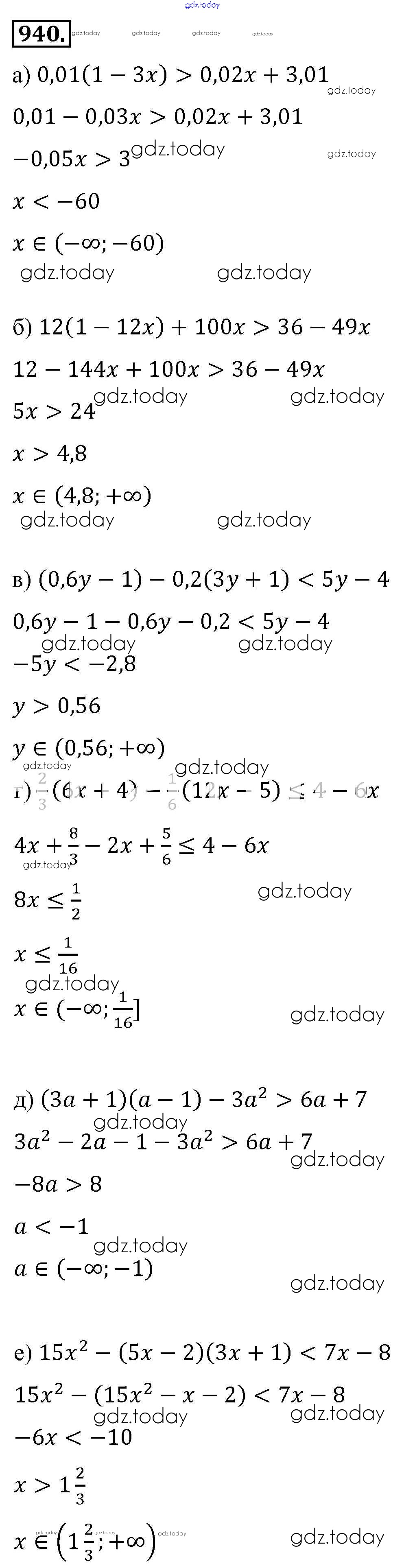 Ответы к Решение к упражнениям 940 Учебнику по Алгебре для 8 класса Макарычев, Миндюк Просвещение 2016