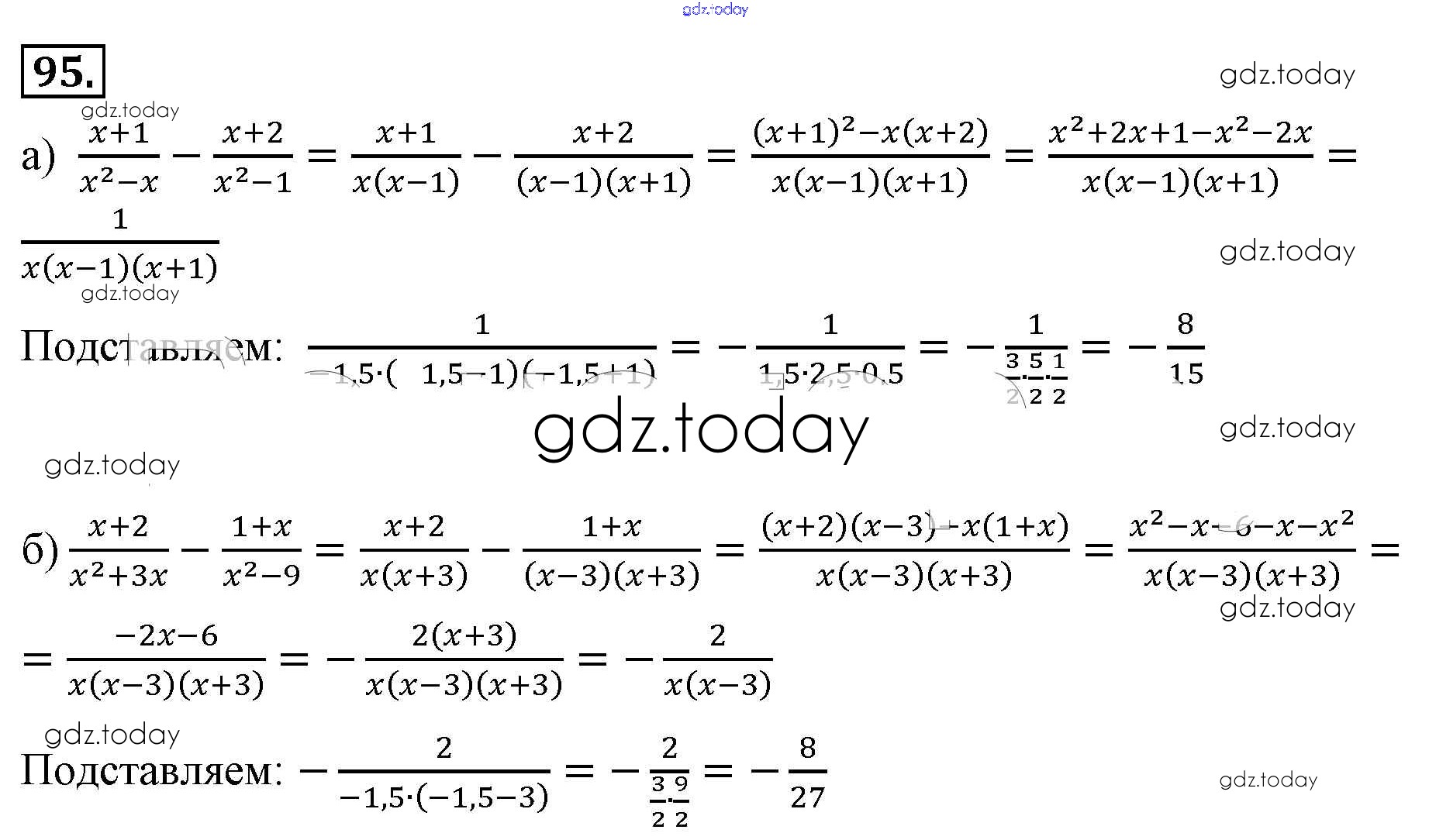 На страницах сайта gdz.today вы найдете учебный и вспомогательный материал, направленный на улучшения знаний школьной программы. ГДЗ - онлайн мир знаний Решение к упражнениям 95 Учебнику по Алгебре для 8 класса Макарычев, Миндюк Просвещение 2016
