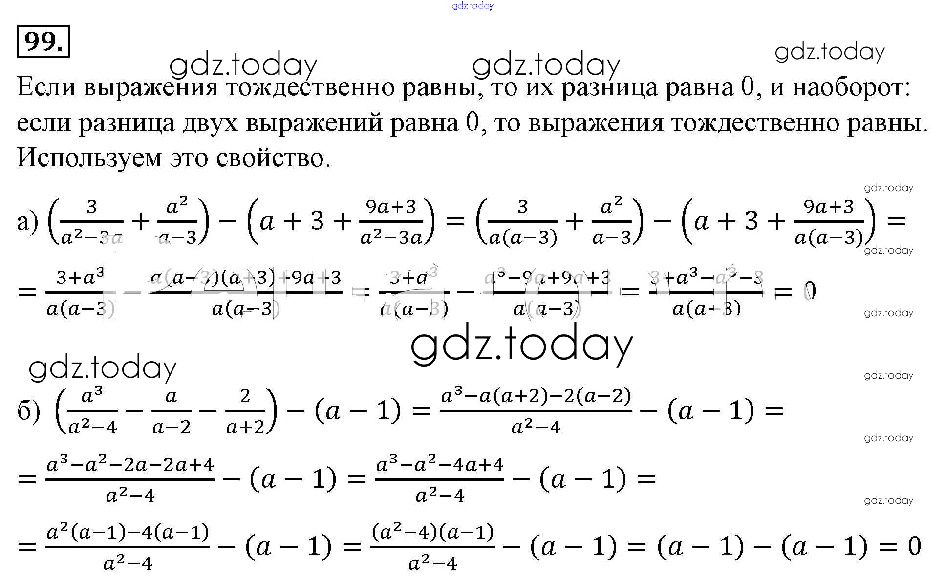 На страницах сайта gdz.today вы найдете учебный и вспомогательный материал, направленный на улучшения знаний школьной программы. ГДЗ - онлайн мир знаний Решение к упражнениям 99 Учебнику по Алгебре для 8 класса Макарычев, Миндюк Просвещение 2016