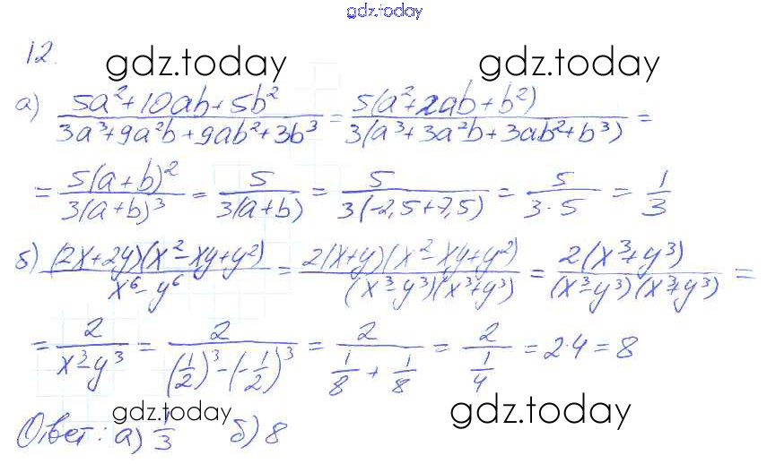 Ответы к Решение. §2. Основное свойство дроби. Сокращение дробей 12 Рабочей тетради по Алгебре для 8 класса Миндюк, Шлыкова Просвещение УМК 2016