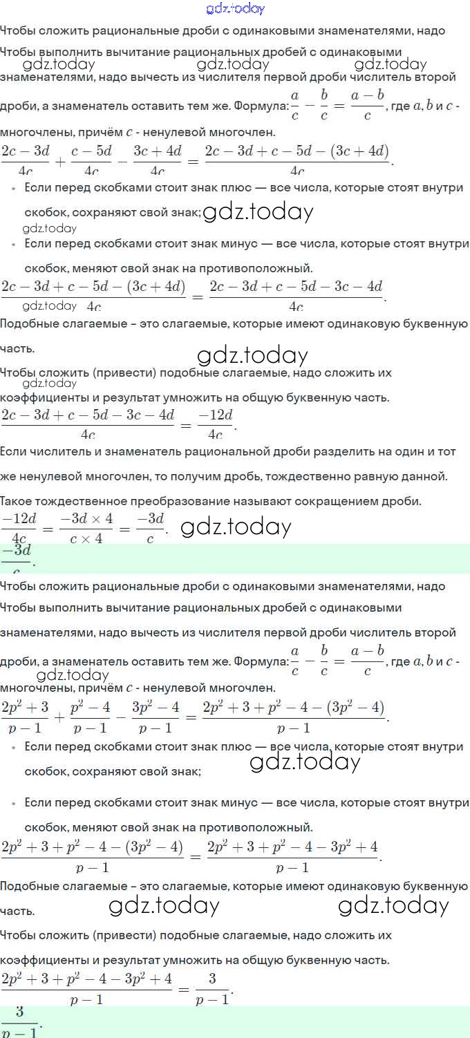 Ответы к Решение. §3. Сложение и вычитание дробей с одинаковыми знаменателями 3 Рабочей тетради по Алгебре для 8 класса Миндюк, Шлыкова Просвещение УМК 2016
