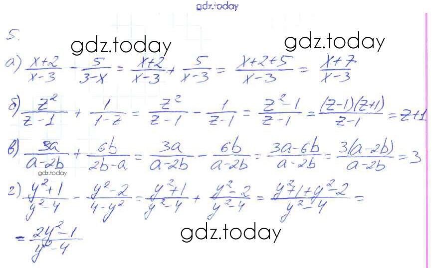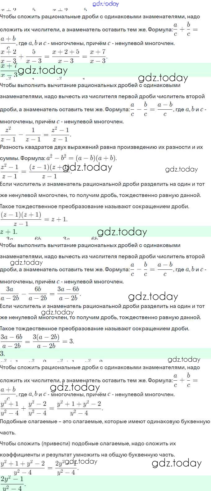 На страницах сайта gdz.today вы найдете учебный и вспомогательный материал, направленный на улучшения знаний школьной программы. ГДЗ - онлайн мир знаний Решение. §3. Сложение и вычитание дробей с одинаковыми знаменателями 5 Рабочей тетради по Алгебре для 8 класса Миндюк, Шлыкова Просвещение УМК 2016