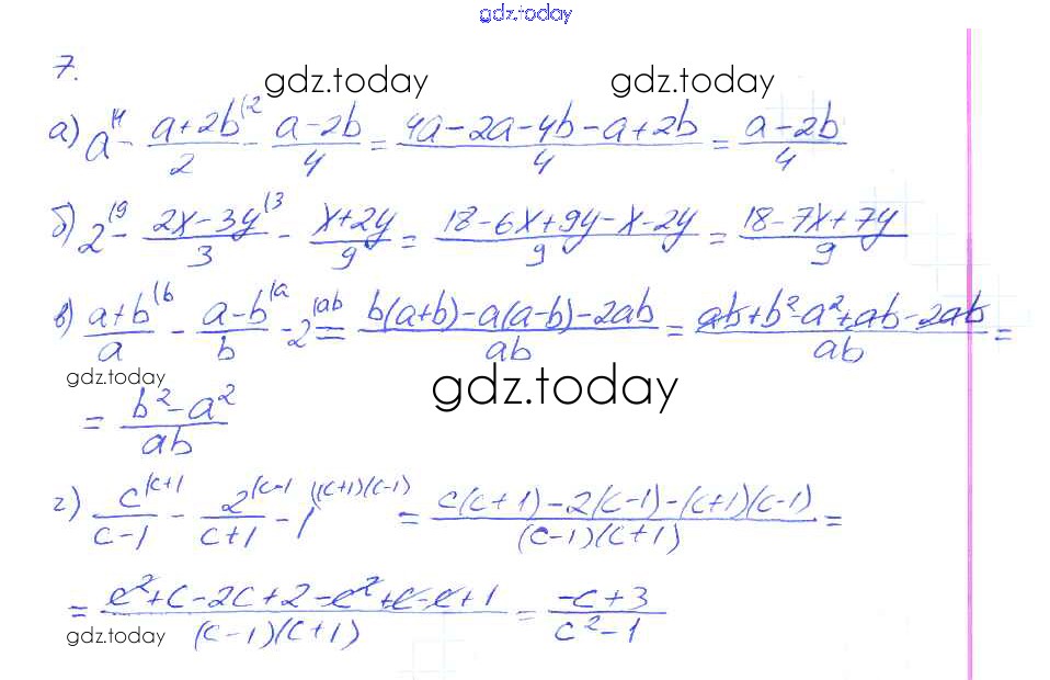 Ответы к Решение. §4. Сложение и вычитание дробей с разными знаменателями 7 Рабочей тетради по Алгебре для 8 класса Миндюк, Шлыкова Просвещение УМК 2016