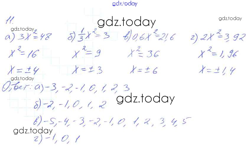 Ответы к Решение. §12. Уравнение x^2=a 11 Рабочей тетради по Алгебре для 8 класса Миндюк, Шлыкова Просвещение УМК 2016