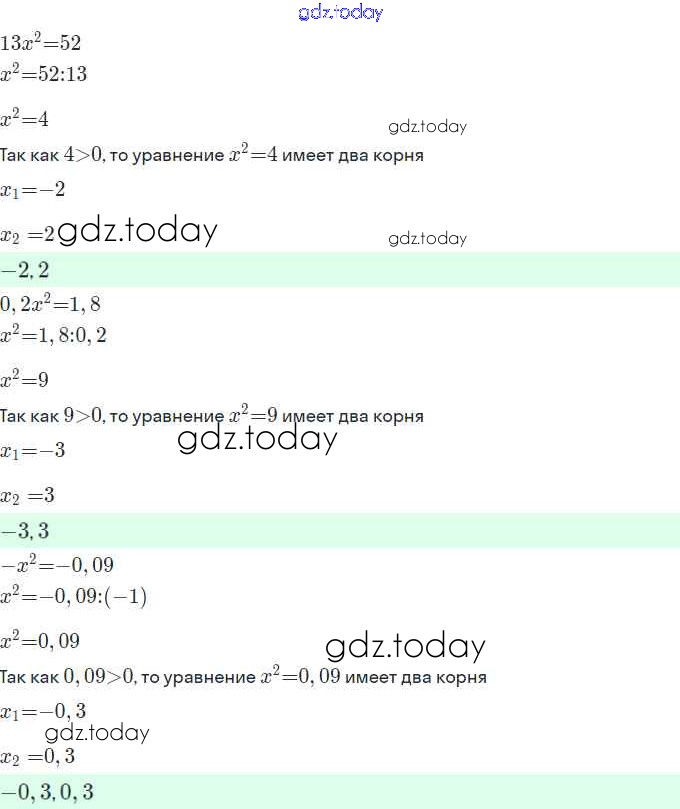 Ответы к Решение. §12. Уравнение x^2=a 9 Рабочей тетради по Алгебре для 8 класса Миндюк, Шлыкова Просвещение УМК 2016