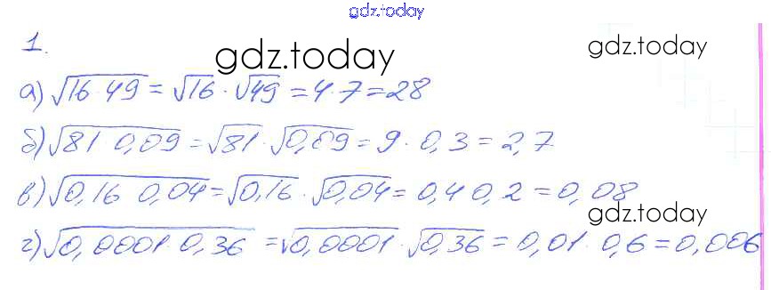 Ответы к Решение. §15. Квадратный корень из произведения и дроби 1 Рабочей тетради по Алгебре для 8 класса Миндюк, Шлыкова Просвещение УМК 2016