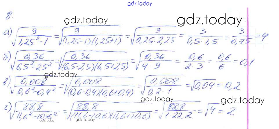 Ответы к Решение. §15. Квадратный корень из произведения и дроби 8 Рабочей тетради по Алгебре для 8 класса Миндюк, Шлыкова Просвещение УМК 2016