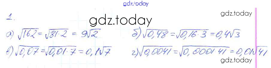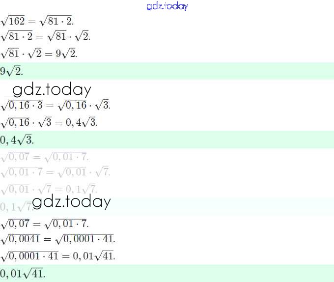 Ответы к Решение. §17. Вынесение множителя за знак корня. Внесение множителя под знак корня 1 Рабочей тетради по Алгебре для 8 класса Миндюк, Шлыкова Просвещение УМК 2016