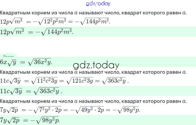 На страницах сайта gdz.today вы найдете учебный и вспомогательный материал, направленный на улучшения знаний школьной программы. ГДЗ - онлайн мир знаний Решение. §17. Вынесение множителя за знак корня. Внесение множителя под знак корня 5 Рабочей тетради по Алгебре для 8 класса Миндюк, Шлыкова Просвещение УМК 2016