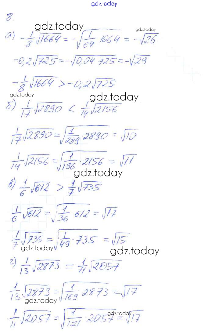 Ответы к Решение. §17. Вынесение множителя за знак корня. Внесение множителя под знак корня 8 Рабочей тетради по Алгебре для 8 класса Миндюк, Шлыкова Просвещение УМК 2016