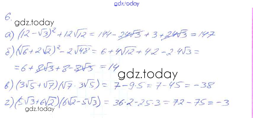 На страницах сайта gdz.today вы найдете учебный и вспомогательный материал, направленный на улучшения знаний школьной программы. ГДЗ - онлайн мир знаний Решение. §18. Преобразование выражений, содержащих квадратные корни 6 Рабочей тетради по Алгебре для 8 класса Миндюк, Шлыкова Просвещение УМК 2016