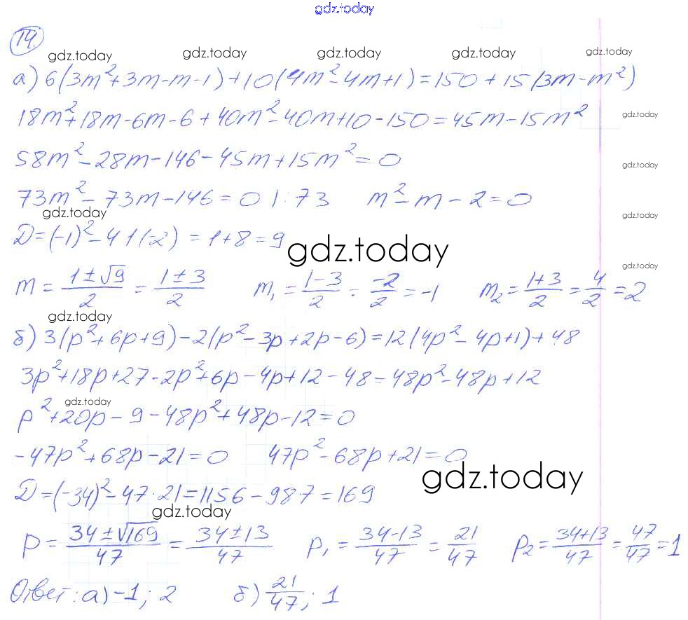Ответы к Решение. §20. Формула корней квадратного уравнения 14 Рабочей тетради по Алгебре для 8 класса Миндюк, Шлыкова Просвещение УМК 2016