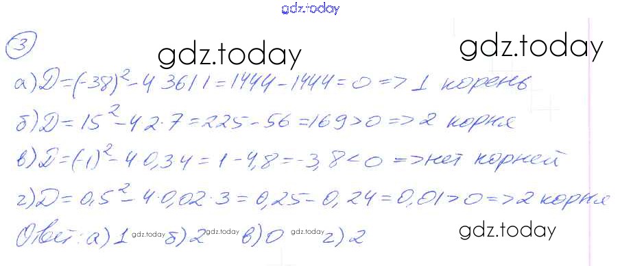 Ответы к Решение. §20. Формула корней квадратного уравнения 3 Рабочей тетради по Алгебре для 8 класса Миндюк, Шлыкова Просвещение УМК 2016