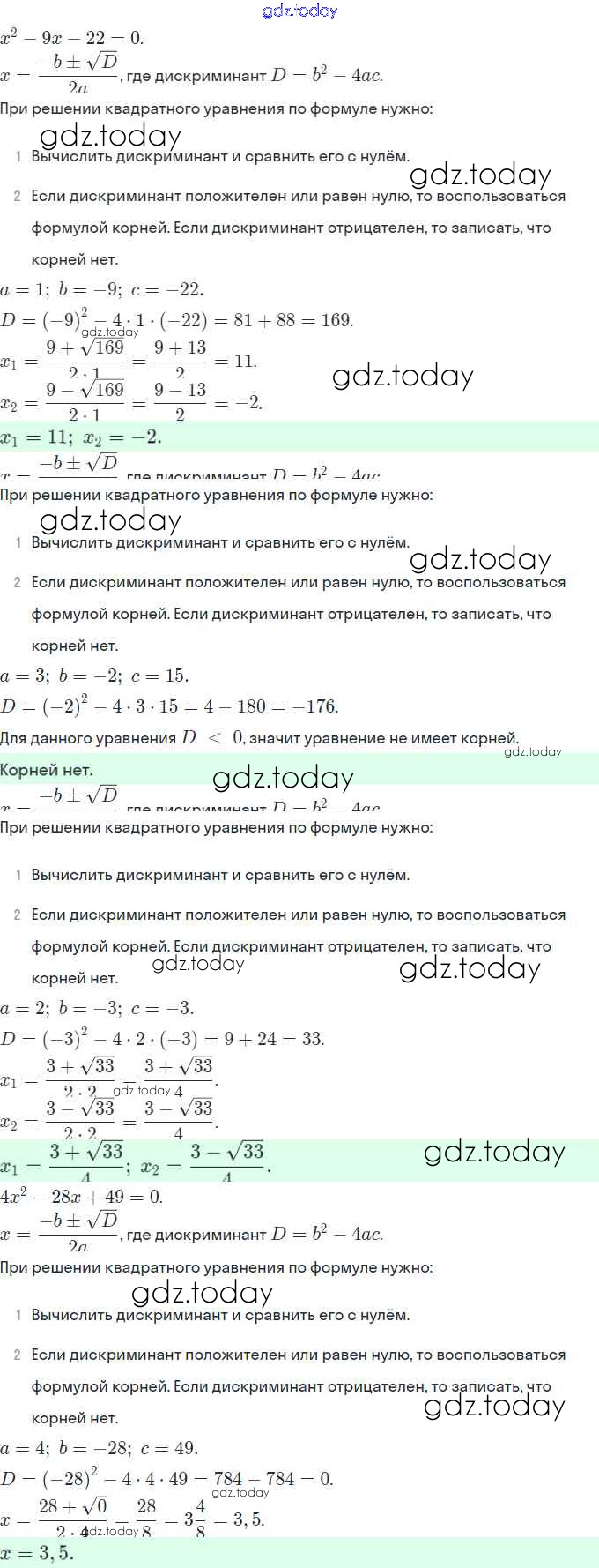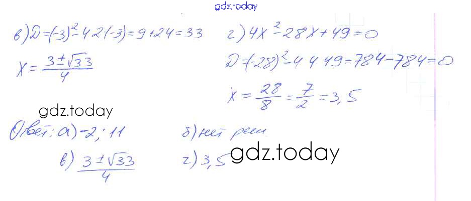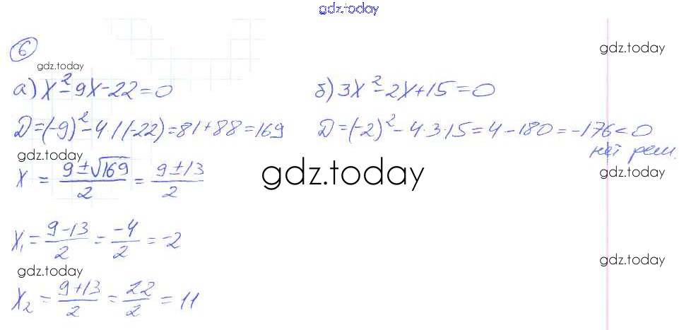 Ответы к Решение. §20. Формула корней квадратного уравнения 6 Рабочей тетради по Алгебре для 8 класса Миндюк, Шлыкова Просвещение УМК 2016
